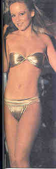 I haven't met Jennifer Cooke, but since I receive a lot of emails regarding her, it was only fitting that I post some information on her. She dropped out of the acting world over five years ago when she met and married the man who owns (or is the CEO, one of those bigwig jobs) of Celestial Teas. This is heresay...I know it was a large Tea company, and heard it was Celestial but this has not been confirmed. Jennifer was born on Long Island, New York in September 1964. Her mom, as of 1990, still lived on Long Island. Heresay says her mom owned an apartment complex. Some of you may have seen Jennifer's work pre-"V" such as her role of Morgan Nelson on the soap opera "Guiding Light" back in 1982-3. There were over 200 other actresses up for the role of the Starchild, Elizabeth, but Jennifer won the part. At 5'6", the "V" producers ordered her to lose 15 of her 125 pounds. Now that Jennifer lost some of that extra weight, she decided to do a pinup poster (see below photo). This isn't the first time Jennifer has bared herself to the public. Back in 1981, she played the part of Pam Bethlehem in the T&A comedy called "Gimme An F" (cheerleading movie!). She also had a brief nude scene in the cable TV series "The Hitchhiker",episode 29 titled "Man's Best Friend", which was after "V." Jennifer's most notable acting part after "V" was in the film Friday the 13th: Part VI. Funny enough, in 1978 she did a TV movie called "Daddy, I Don't Like It Like This" which starred Talia Shire, Burt Young, and Melanie Griffith. To add to the excitement, my very own BROTHER, Justin, was an extra in this movie when he was 6 years old! Imagine that!!!! That fits right up there in the same category as Brian Tosko (Jane Badler Society) being an extra in "The Highwayman" with Jane Badler and having a scene with Greta Blackburn (Lorraine, V:TFB) and not even knowing it!