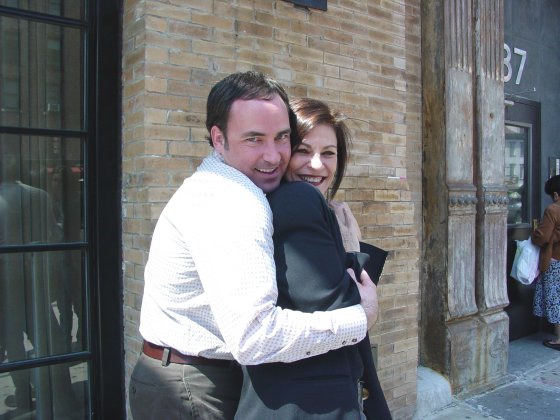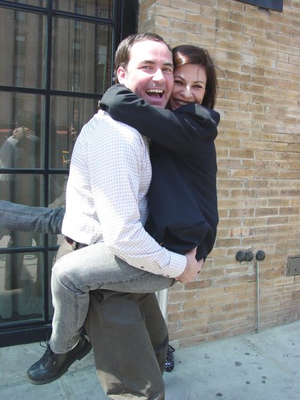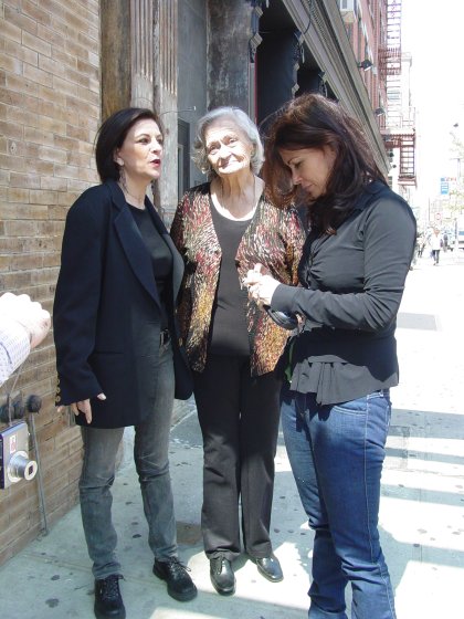 4/23/2008 How excited do you think I was when Brian Tosko, President of the Jane Badler Society, told me that Jane was coming back to New York so soon after her last visit [Halloween 2007?] Well, I'm sure you can imagine how my heart was pounding with anticipation! Next thing I know, Jane contacted me with a date, time and location where to meet her for lunch. This was an extra-special day because Jane's husband, Stephen, her mom, Enid, and younger sister, Alice, were also staying with Jane in NYC! Unfortunately for me, Stephen was busy working so I didn't get to meet him, but Brian met him a loooong time ago in Florida when Jane and Stephen were in the States. The time for lunch was set at 12:30pm, but I arrived at the secret hotel location around 12:15pm. Brian phoned to say he'll be arriving in 5 minutes (which was really 15 minutes NYC cab-time.) The front desk girl called up to Jane's room to let her know I was there -- and professionally announced me as Lizard Lady. Front Desk Girl smiled and told me to meet them at the restaurant. I hung out in the lobby until Brian arrived so we could make our grand entrance together. Brian and I entered the elevator (which was padded like an insane asylum) and headed upstairs to the restaurant. We were greeted by the host and then Brian spotted Jane waving to us. Totally (yet accidentally because of excitement) ignoring Host man, we made our way inside and into the arms of Jane, Alice and Enid!! (Enid hadn't seen Brian in person in like 15 years!) We sat down in the waiting area until the table was ready. After kisses and hugs, Jane handed me a bag with gifts! A very thoughtful, neatly wrapped box of Aroma Therapy Sticks and a fun gumball machine! (love that stuff!!!) I told her how I hadn't had a bath in forever so the sticks will help greatly! We briefly discussed the V:TSG book and how we hope the two (or even just one!) theatrical movies get made. Jane liked the whole Insect idea. At the lunch table: Tuna Garden Salad, Sparkling Water, Seafood cocktail, Hamburgers (Brian and me), Bread in a Basket. Portions were a nice size and everything was delicious! Originally I was going to order just a Salad and Jane said, "You need protein!" so I switched to the hamburger. When the French Fries came out, Enid passed them around and told Brian to take more, more more! (he's a growing boy, you know.) Enid and Alice had a car coming to escort them out of the city at 2pm and it was now 1:50pm. But we had to take pictures! The driver was already downstairs waiting, so Alice asked him if he could drive around the block (giving us 10 mins to take the pics!) Then he came back and shot the pic of all of us. After Enid and Alice left, we went back up to the Restaurant where Jane signed the Exclusive CD's (to be released in June 2008.) I have 9 Autographed CD's with glossy picture booklet and words to the 11 songs, so if you want one, email me immediately with "JANE BADLER CD' in the subject! Then Jane invited Brian and me to her room. And what a room it was! This place was huge (750 sq foot and a 40" wall hanging TV) and so unlike any normal-sized NYC pea-sized room! It had a HUGE tub right out in the open with just a curtain to pull around for privacy. The bathroom was sectioned off with a double trough-like sink and steam shower. Jane checked her hotel room voicemail (the red light was on) while Brian and I checked out the accomodations. Then it was time to go. Jane had tickets to see 5 shows, one starting that very night, and I had to catch a train back to Jersey to pick up baby KJ from daycare! Jane walked us downstairs and to the next block. Brian walked me to the subway. We all had a fanastic time, as you can see from the pictures!! (below)