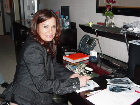 SCROLL DOWN FOR THE PICS! What's it like spending an afternoon in NYC with 2 of the most lively, beautiful women in the world? I'm sure you can imagine! Many months ago, Jane originally asked Brian Tosko (Jane Badler Society) and me out to lunch for Oct. 23rd, 2007. Then Jane asked her sister, Alice, to join us for lunch! Alice got in touch with me and said, "I heard you and Brian are coming to lunch with Jane and me." Of course, I corrected her and said, "Uh, no. YOU are coming to lunch with Jane, Brian and me!" Alice is so silly. During all of this, Jane got the lead role in a movie being shot in Australia called "Under a Red Moon." (As of this posting, their site is not yet complete so sometimes it doesn't work.) Unfortunately, they had to re-shoot some scenes which made it impossible for Jane to come in on 10/23. Instead, she was pushed back a week, so the new plans were for Halloween 10/31/07! Halloween in New York City!!! For fun meetings, Jane is always fashionably late. The original plan was to meet up at 11:30am. Then Alice called and said to change it to 12noon because Jane wanted to go shopping at 8am at various places in the city, including Barney's. So I knew the "real" time meant 12:30. And would you believe, that's exactly what happened :) However, Brian and I still had the same plans to meet up at 11:30 so we kept our plans the same so we could catch up while waiting -- hoping the girls really did show up at 12 instead of 12:30. The Hotel Lobby was quite a nice size. Brian was there before me so when I got off the elevator (the Lobby was on an upper level of a building with retail stores underneath), he was right there sitting on a bench. We quickly met up and I got a nice European "double kiss on each cheek" from Senor Brian! Brian was driving all night to get to the city and he was exhausted, so he excused himself to go find an energy drink. Now it's almost 12:30 so I decided to find Alice. She said she and Jane are on the way up to the Lobby so I had to quickly Text Message Brian to get back! Somehow he made it back upstairs before the girls arrived. And wa-lah! The elevator door opened and Jane and Alice stepped out with some shopping bags, saw us and came running over for kisses and hugs! How delicious! Jane suggested we do Autographs first, then Lunch and then shopping. She wanted to take us to a magic shop that her son, Harry, wanted some stuff from (the kids and husband weren't with them -- they stayed back in Australia.) Sounded fine to us! We were all giggling and laughing at nothing -- just having a good time -- as we piled into the elevator to get to Jane's room. When we got there, the cleaning people were servicing her room so we couldn't go in. Quickly had a change of plans to eat first, so we ate right at the hotel. We sat on these big couchseats with a low table. Brian and I had already planned to buy the girls lunch, but before we could say anything, Jane graciously said, "Get anything you want. I'm treating." Well! Who could turn that down?! Jane and Alice shared a shrimp appetizer while Brian and I sipped our drinks. The meals took an awful long time to get served, which gave us a great opportunity to talk about everything under the sun! Including sex!! We talked about her upcoming CD (see her MySpace Page,) the film she just finished, her mom, Enid, her family, etc. Brian surprised Jane with DVD's of most of her shows that were only taped (back then) in VHS format! Jane was absolutely stunned and very thankful! I ordered a chicken sandwich which came with french fries. Being 6 months pregnant, I'm not really allowed to eat too many fun things, so I didn't touch the fries. Jane helped herself to them! (fries are totally different in NYC than in Australia!) You can tell she missed the good ol' NYC cooking! Finally everyone finished lunch but because it took so long to be served, we were now running very late. Jane had a limo waiting to take us shopping and it was only good for two hours! The clock was already ticking! But we had to do the autographs!! We *bolted* back to her room which was now super clean. I had to use the bathroom asap, so I ran in there as Brian started getting Jane's fan mail organized. Alice was taking pictures. The bathroom was huge and as I was washing my hands, I spotted some of Jane's lingerie on the counter. Black, of course, her favorite color. With four people in the room now, I had to get to the other side to take some pics of Jane signing the autographs (with my cam instead of Alice's.) I had to jump over the bed because our bags were all over the place from the rush. Luckily, I didn't harm the camera ;) Everything was done rush-rush yet Jane read every fan letter from start to finish! Some had pictures for her to sign, others she signed the fan mail itself. She personalized as much as she could but as it got toward the end, the Limo was calling. She wanted to make sure she signed everything and Brian and I shoved everything back into our bags and we were out the door! When we arrived at the Lobby, Jane went to the Concierge to ask where the Magic Shop was, and the Concierge totally blew it. He said, "You don't want to go to a magic shop on Halloween. It will be crazy, especially if they have Halloween costumes! Go tomorrow." Can you believe that?! I was boiling. This was our opportunity to go shopping with Jane & Alice and bam, spoiled in 60 seconds. We got downstairs and found the Limo driver patiently waiting for us. Jane and Alice were going to a furniture store that Jane's decorator had suggested and Alice's daughter, Leigh, was to meet them there at a certain time. Meanwhile, Enid, Jane and Alice's mother, was due to arrive in the city around 5:30, so everything was on a tight schedule. Jane and Alice were gracious enough to drop Brian and me off close to Madison Square Garden (where I had to get the train back home.) Brian was staying in the city but didn't have an evening schedule, so he walked me to Penn Station and